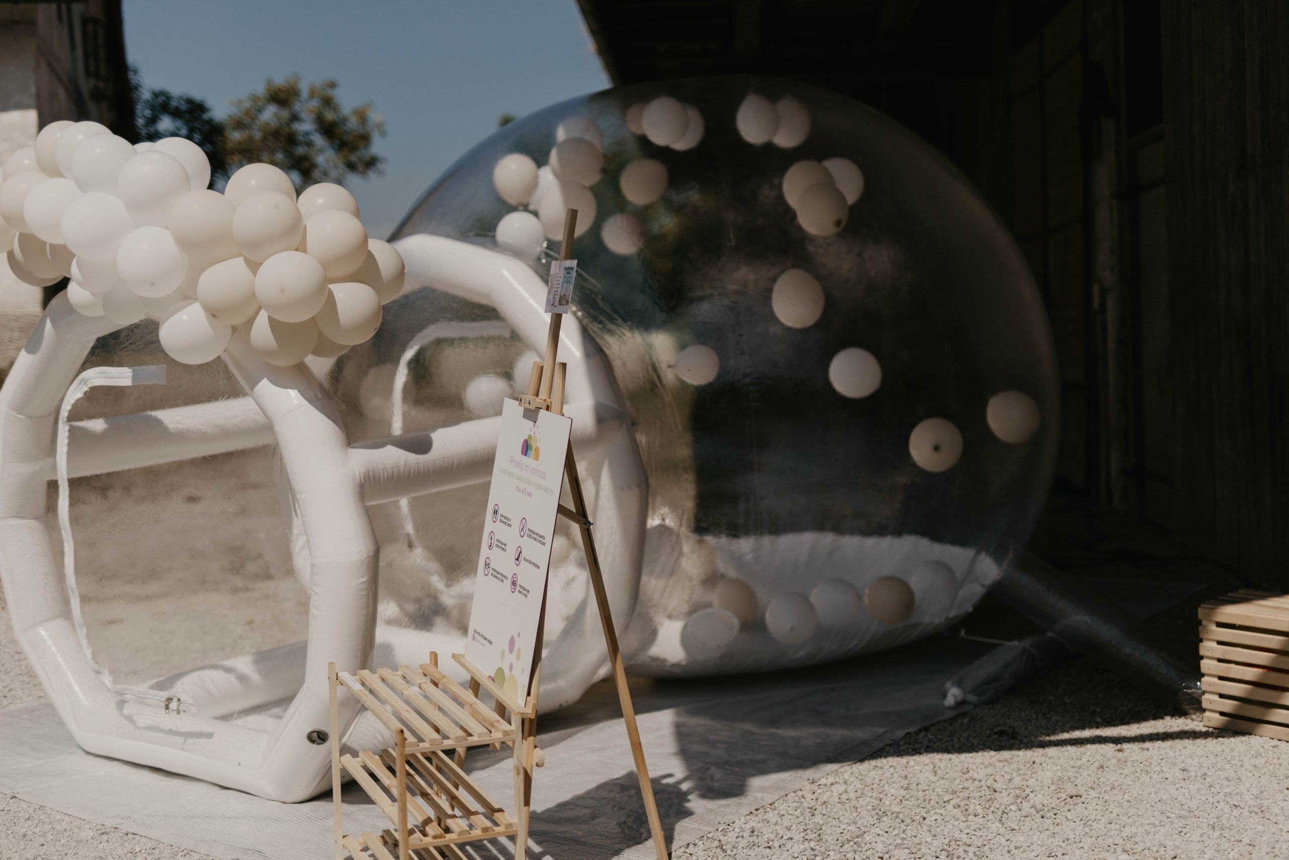 Naj vaš dogodek zasije z našim edinstvenim Bubble House! Ne glede na priložnost – poroka, zabava ali promocija – poskrbimo za popolno kombinacijo elegance in zabave. Rezervirajte zdaj in dodajte vašim trenutkom igrivo noto, ki bo očarala vse!